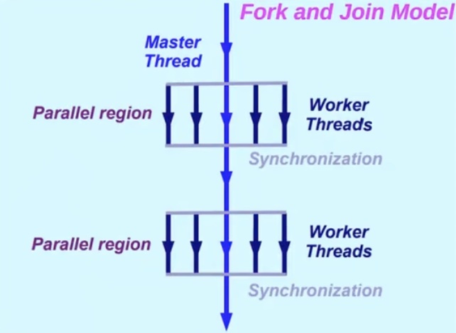 - 进入并行区(parallel region)开始并行执行
