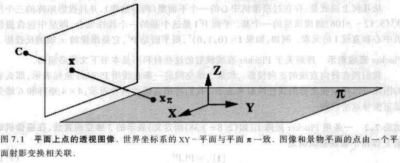 - 假定选择 XY - 平面与景物中的平面 \(\pi\) 对应,使得平面上的点 \(Z\) 坐标为零。