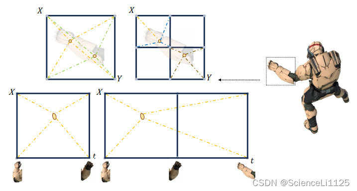 - 如上图所示,空间相邻的高斯在运动和形变上具有相似的特征,同一个高斯在相邻时间也会呈现相似的变化特征,并且相隔较远的高斯之间也会具有一定的关联。