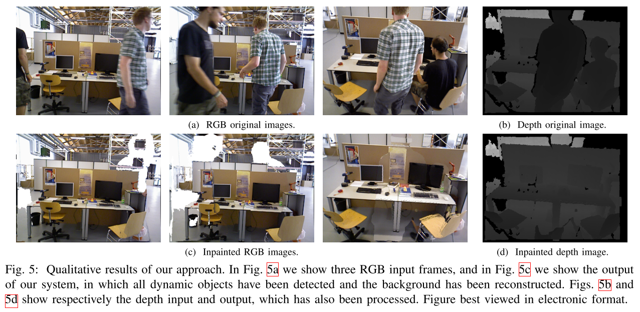 从下面的图 5 可以看到大部分被分割的部分已经用来自静态背景的信息进行了适当的补全。