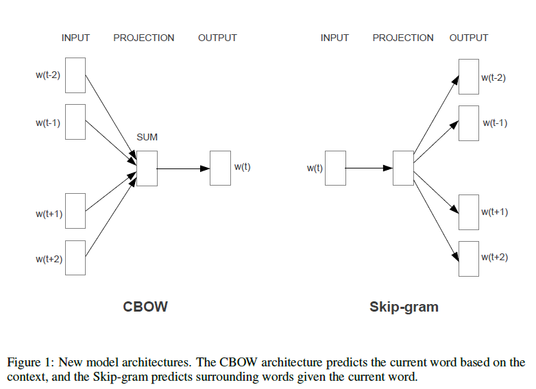 可见我们只要得到了词汇表里所有词对应的词向量,那么我们就可以做很多有趣的事情了。不过,怎么训练才能得到合适的词向量呢?针对这个问题,Google 的 Tomas Mikolov 在他的论文中提出了 CBOW 和 Skip-gram 两种神经网络模型。
