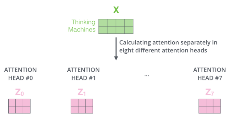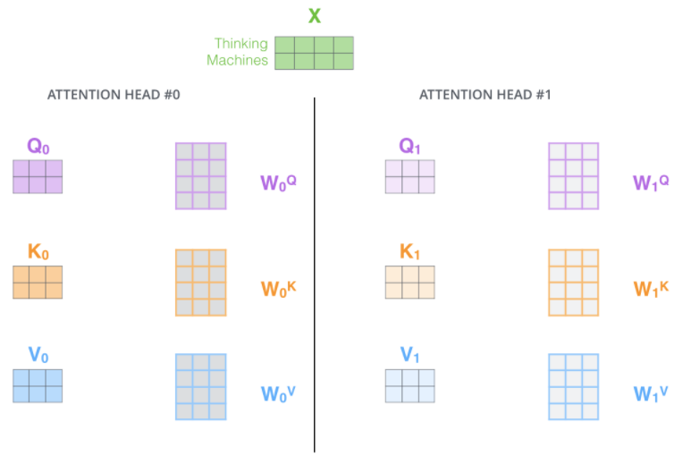 一个多头注意力的例子: