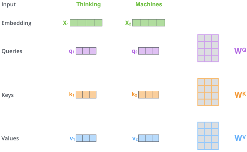 - 为每个词向量创建三个向量:
