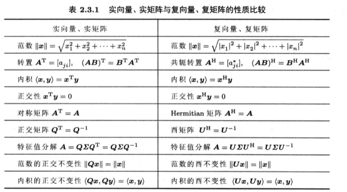 - 矩阵 \(\mathbf{A} \in C^{n \times n}\) 称为正规矩,若 \(\mathbf{A}^H\mathbf{A}=\mathbf{A}\mathbf{A}^{\top}\)